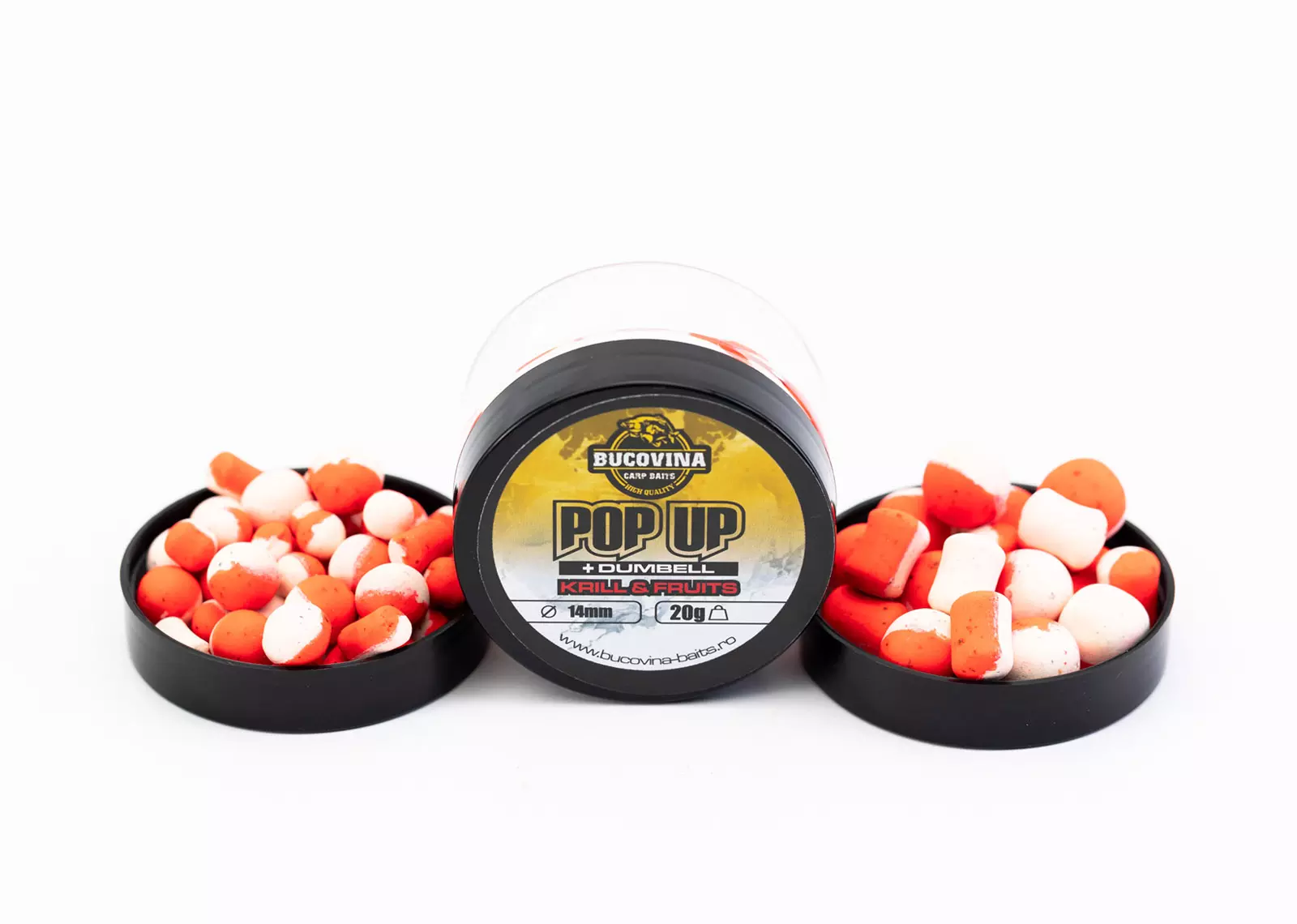 Pop-Up lebegő bojli és dumbells. A fluoreszkáló szín, a csalogatóanyagok és az íz ellenállhatatlanná teszi még a legóvatosabb pontyok számára is. Méretek: 8-10mm, 14mm, 20g